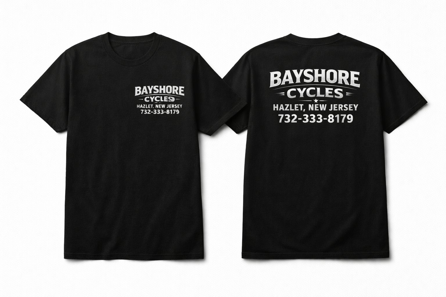 Featuring our bold Bayshore Cycles logo on the back and a clean left-chest print up front, this tee brings classic club-style attitude with everyday comfort.